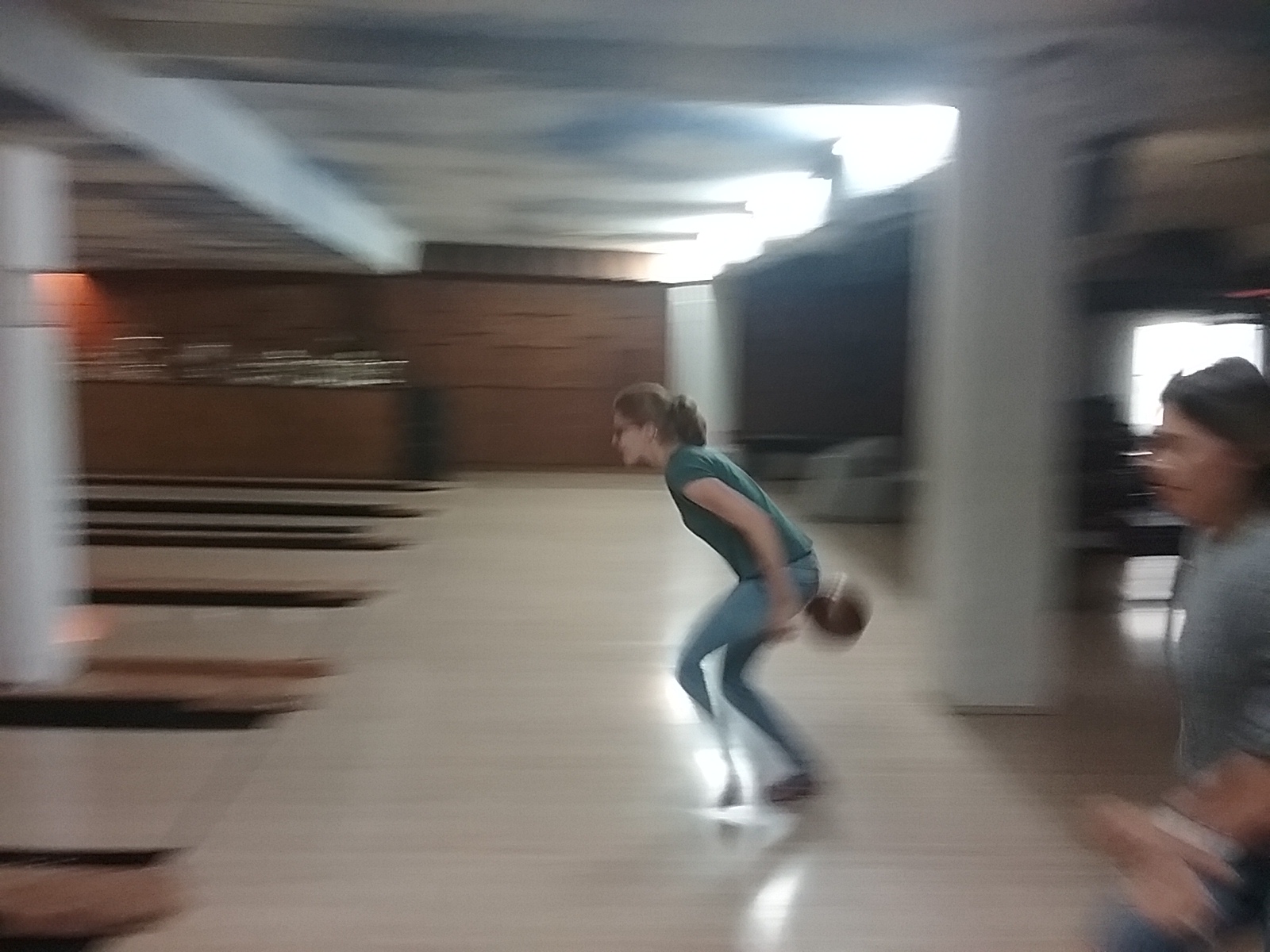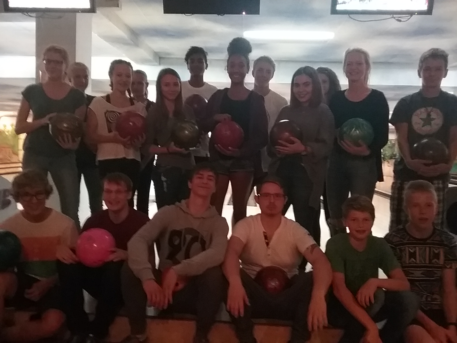Nach einem langen beschwerlichen Weg zum Ziel unserer Träume wartete bereits ein alter Mann auf die Gruppe. Es stellte sich heraus, dass der Mann der Trainer aller männlichen Gruppenmitglieder war. Ein Schock, war es doch ein Treffen von angehenden Erwachsenen! Doch die Gruppe machte das Beste daraus. Man organisierte sich auf drei Bowlingbahnen und verteilte die, bereits vor Anspannung aufgedrehte, Menschenmasse. Alsbald war die Luft erfüllt von Testosteron und dem Duft des Sieges, obgleich sich auch ein bitterer Geruch von Niederlage nicht leugnen ließ.