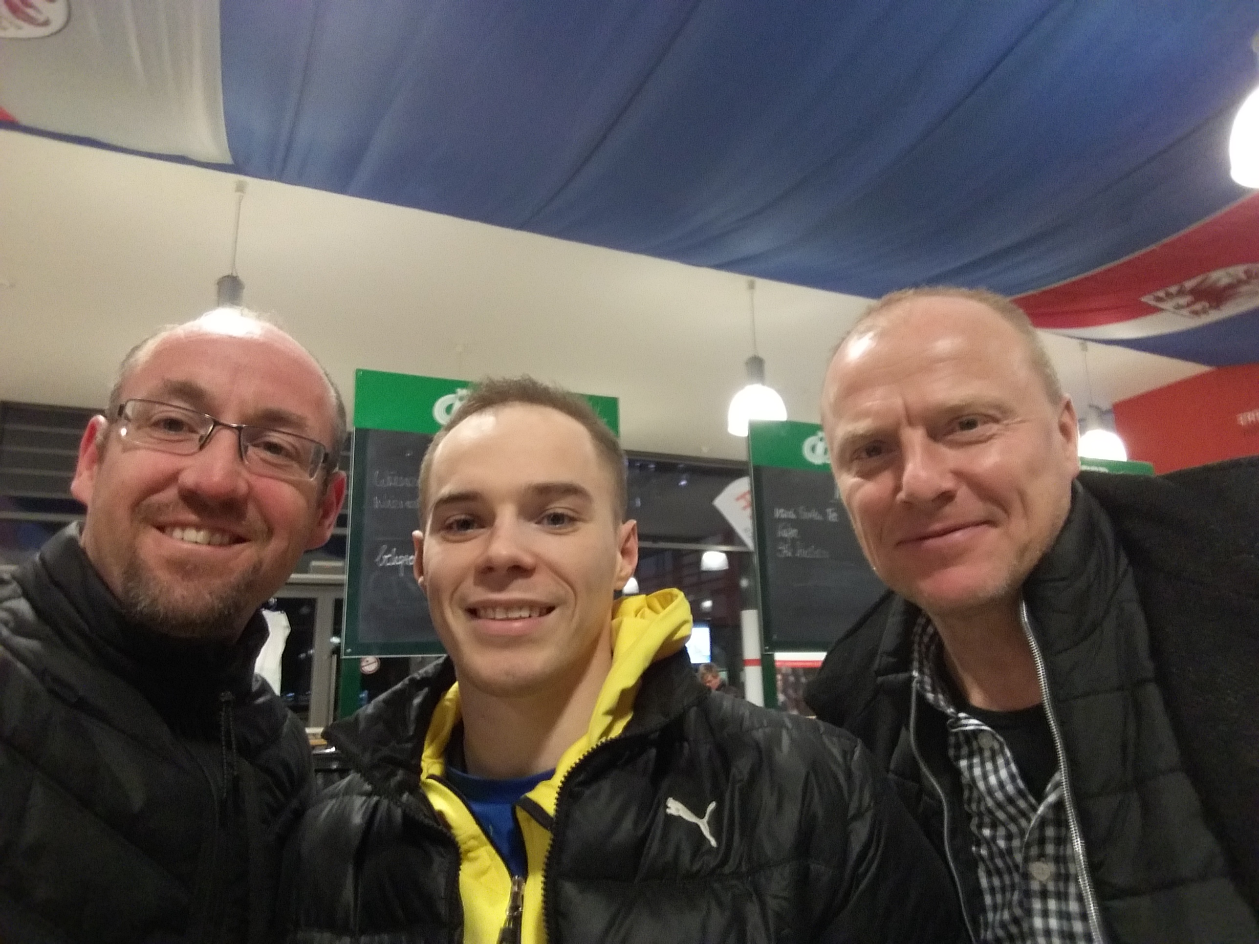 Kurz vor der Rückreise gratulierten wir Oleg Verniaiev zum Sieg am Barren.