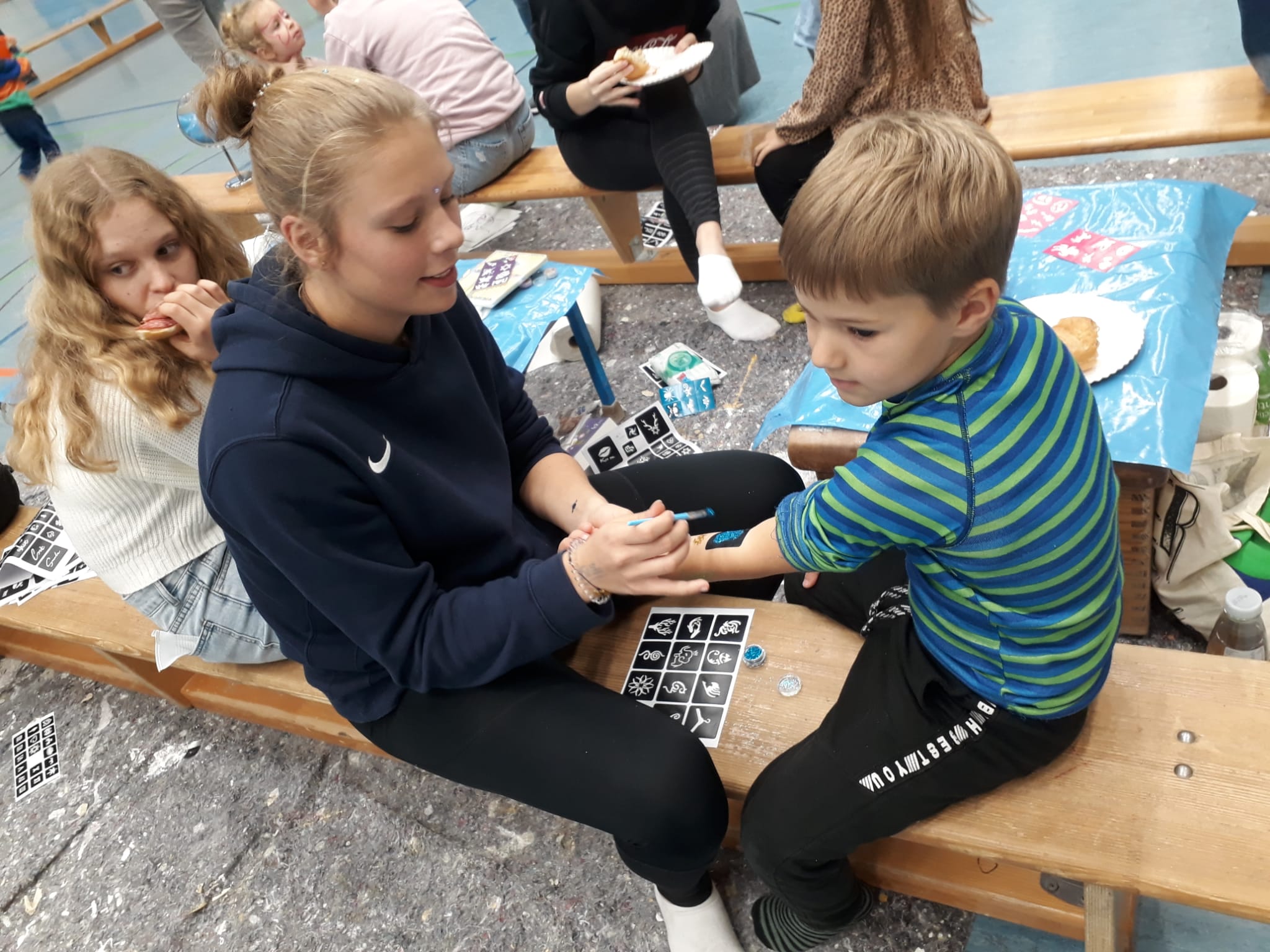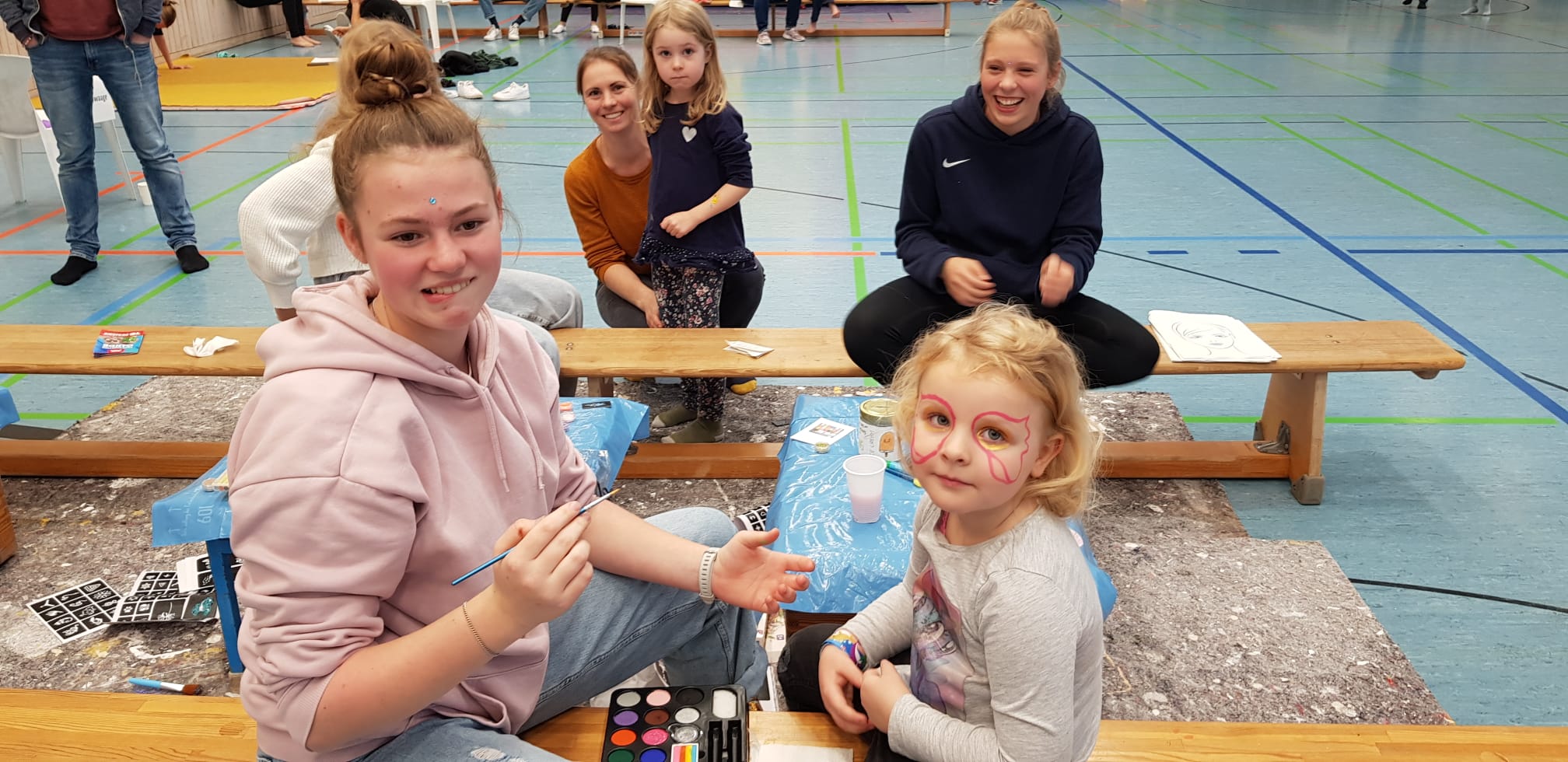 Beim Kinderschmicken herrscht ordentlicher Ansturm und unsere "großen" Turnerinnen zeigen ihr künstlerrisches Talent:
