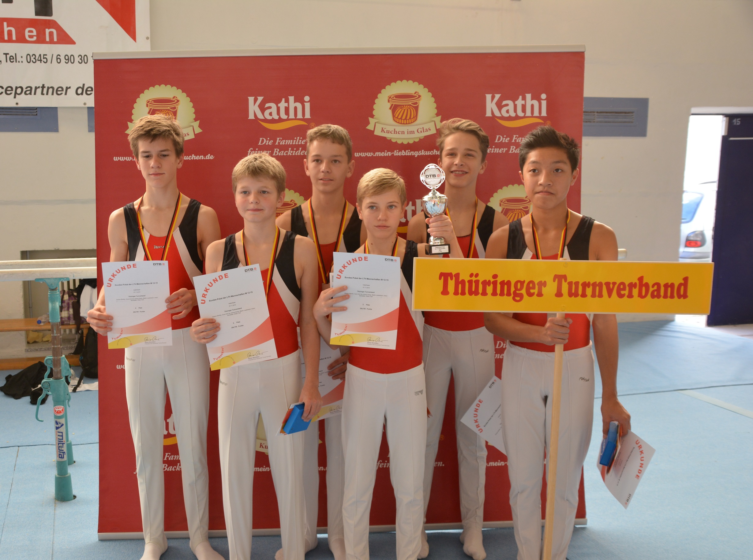 Pro Gerät mussten 5 Turner ihre Kürübung den Kampfrichtern präsentieren. Die besten 4 kamen ins Mannschaftsergebnis. Die Auswahl aus Thüringen bestand aus drei Turnern des MTV Erfurt und drei der TsG Jena. Sauber und Sicher hieß die Devise im Lager der Thüringer. Ohne größere Fehler kamen alle durch das Wettkampfprogramm. Der erfahrene Anton Schneider überzeugte an allen 6 Geräten. Der jüngste Simeon Bentke konnte erneut Erfahrung auf nationaler Ebene sammeln und Antony Kamp bewies, dass er im letzten halben Jahr einen enormen Leistungsschub gemacht hat. „Antony hat sich nicht beeindrucken lassen und an seinen 3 Geräten Pauschenpferd, Reck und Sprung wichtige Punkte erturnt“, so Heimtrainer Falk Seliger. Am Ende hieß es knapp Silber vor der Auswahl aus Sachsen.
