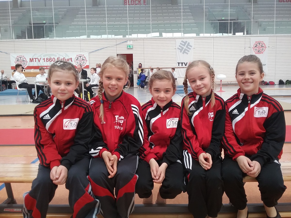 Samstag in der Erfurter Riethsporthalle: Es finden die Thüringer Meisterschaften der Altersklasse 8/9 und 10/11 im Turnen statt. Die TsG Jena ist mit 15 Turnerinnen und Turnern vertreten. Das Ziel der Jenenser lautete, den Einen oder Anderen in die Top 6 zu bringen.