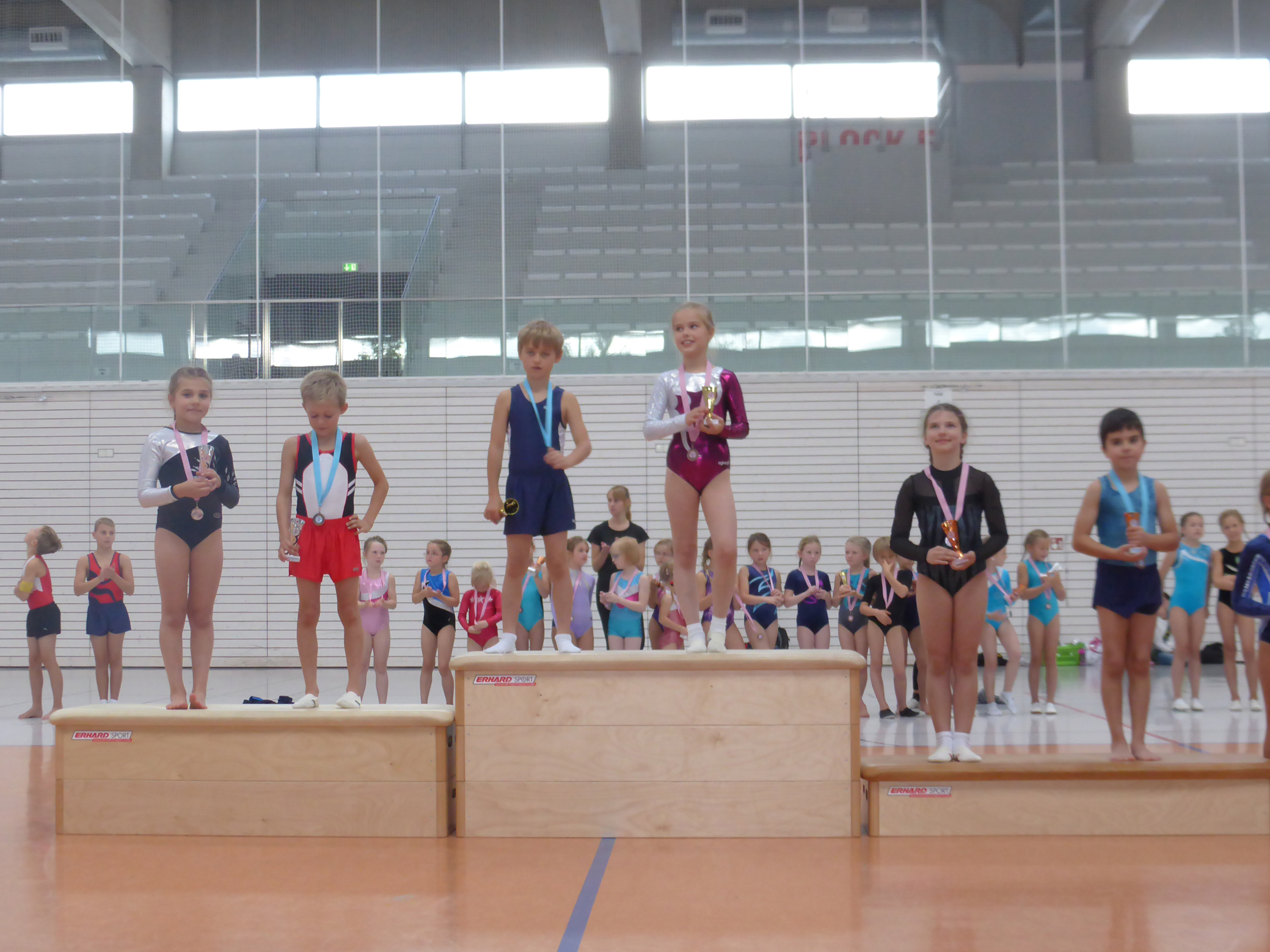 Das stärkste Teilnehmerfeld gab es in der AK 7 mit 27 Turnerinnen. Hier belegte das Geburtstagskind Sophia Sust nach einem überzeugenden Wettkampf und sehr guten Übungen an Reck und Boden den 4. Platz. Mit nur 0,05 Punkten dahinter belegte Fenja Pester den 5. Platz, sie konnte ebenfalls am Reck und Boden überzeugen. Ebenfalls tolle Leistungen zeigten Yaël Godmann (9. Platz), Lina-Marie Lehmann (10. Platz) und Emma Hübel (16. Platz).