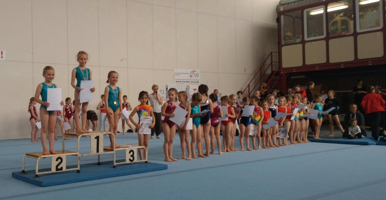 In der Einzelwertung ging der SIeg an Lucia Barstein und auch die Plätze 5 (Clara Sust) und 6 (Lotta Neumeister) gingen noch an Turnerinnen aus Jena.