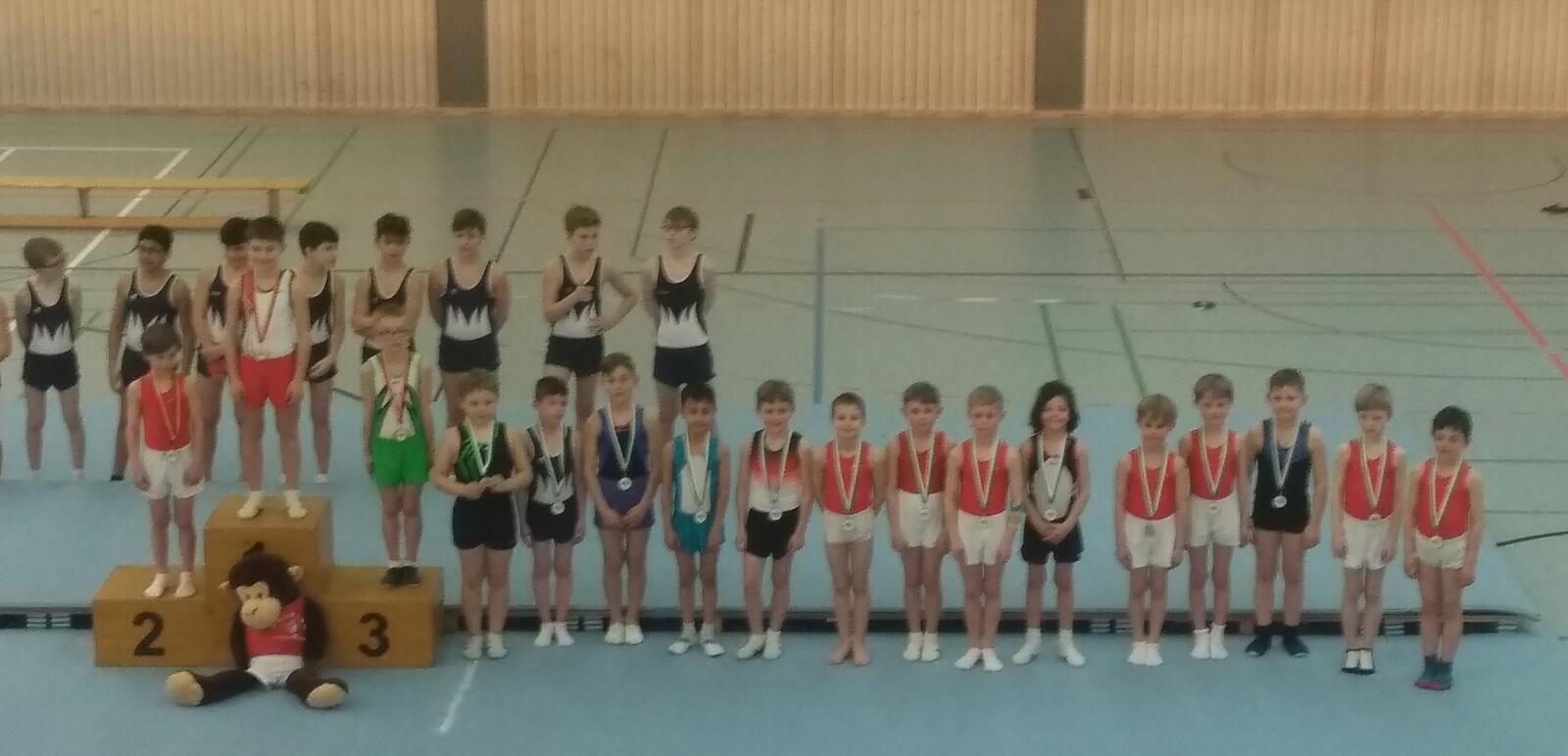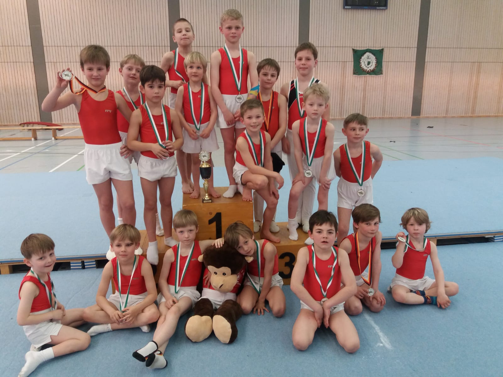In der AK 6/7 erturnten sich Mika Wick, Lionel Fischer, Malte Koch, Jari Miethke, Noah Ackermann und Florentin Fischer die Plätze 5 bis 10. Einige wie z.B. Lionel hatten heute ihren 1. Wettkampf überhaupt, verriet Ronny Hentschel. In der AK 8/9 gab es eine verdiente Silbermedaille von Max Günther, der im Durchschnitt über 9,20 Punkte (max. 10 sind möglich) erturnte. Karsten Hoffmeier kam auf einen sehr guten 9.Platz. Simon Richard Schröder, Mika Fritsche (beide 10.), Hugo Bungartz (13.) und Fabian Fischer (14.) trennten nur 0,25 Punkte. Matti Goldammer und Markus Hentschel kamen auf die Plätze 16 und 17.
