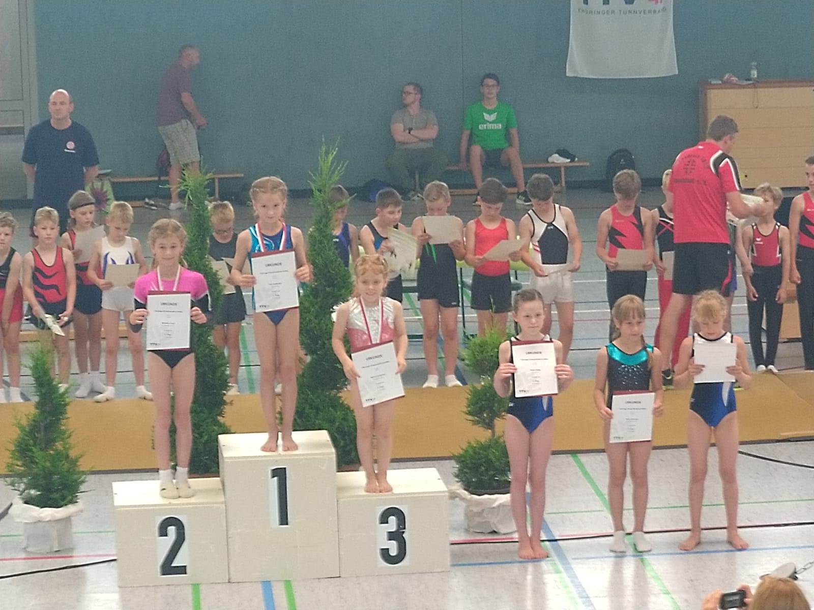 143 Turnerinnen und Turner aus 19 Thüringer Vereinen haben an diesem Wochenende an der Landeseinzelmeisterschaften der AK 10/11 teilgenommen. Für eine große Überraschung sorgte hier Yaël Godmann. Sie gewann in der Altersklasse 8/9.