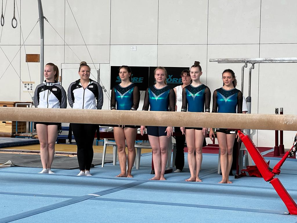 Die 1. Mannschaft der TsG Jena konnte, nachdem sie den ersten Wettkampf im April gesundheitsbedingt in Minimalbesetzung bestreiten musste, vollzählig an den Start gehen. Am Zittergerät Schwebebalken gelang den Gastgeberinnen ein hervorragender Einstieg mit drei gelungenen Übungen voller Höchstschwierigkeiten. Am Boden folgten ausdruckstarke und ebenso schwierige Übungen, die mit hohen Wertungen belohnt wurden, genau wie danach die Leistungen am Sprung. Der Stufenbarren ist aufgrund schwieriger Elementanforderungen in der 1. Liga stets eine besondere Herausforderung. Auch diese meisterten die Jenaerinnen besser als beim ersten Wettkampf, doch wie gut man im Vergleich zur Konkurrenz abgeschnitten hatte, ahnte die Mannschaft noch nicht. Umso größer war die Überraschung bei der Siegerehrung: Mit 154,1 Punkten entschied die Mannschaft der TsG Jena den Wettkampf denkbar knapp für sich, nur 0,3 Punkte vor Sondershausen und 0,4 Punkte vor der 1. Mannschaft des TV Gera.