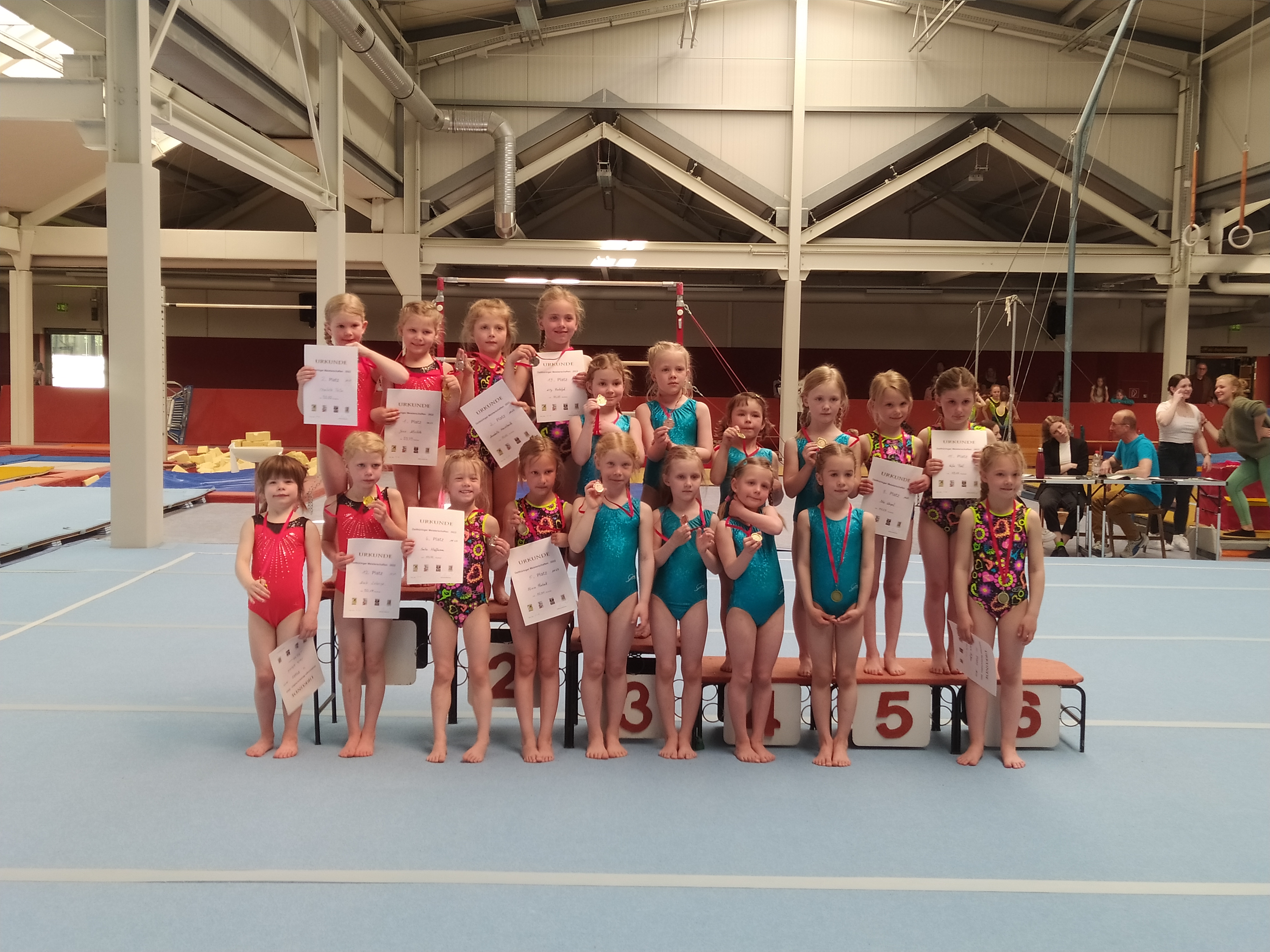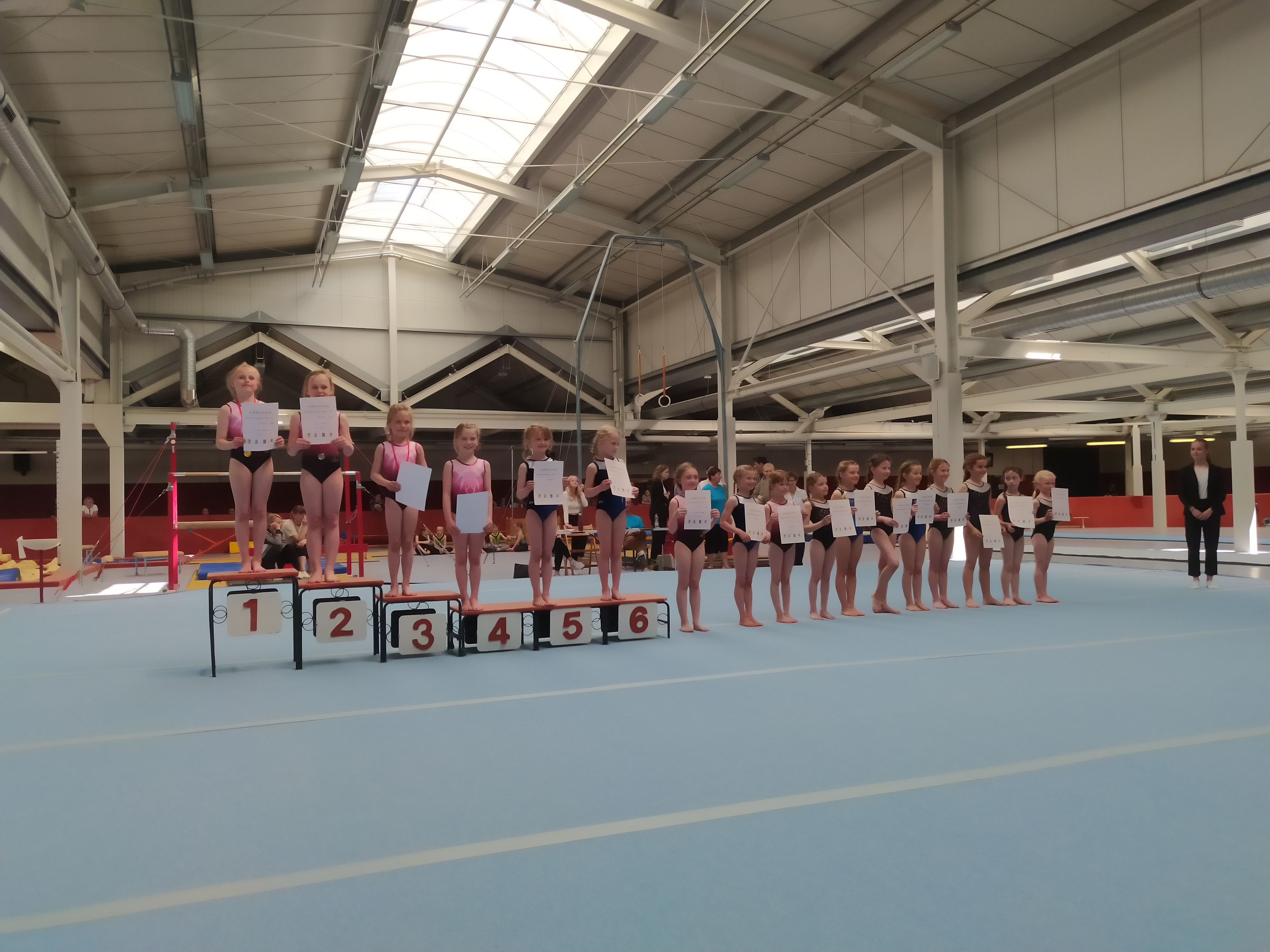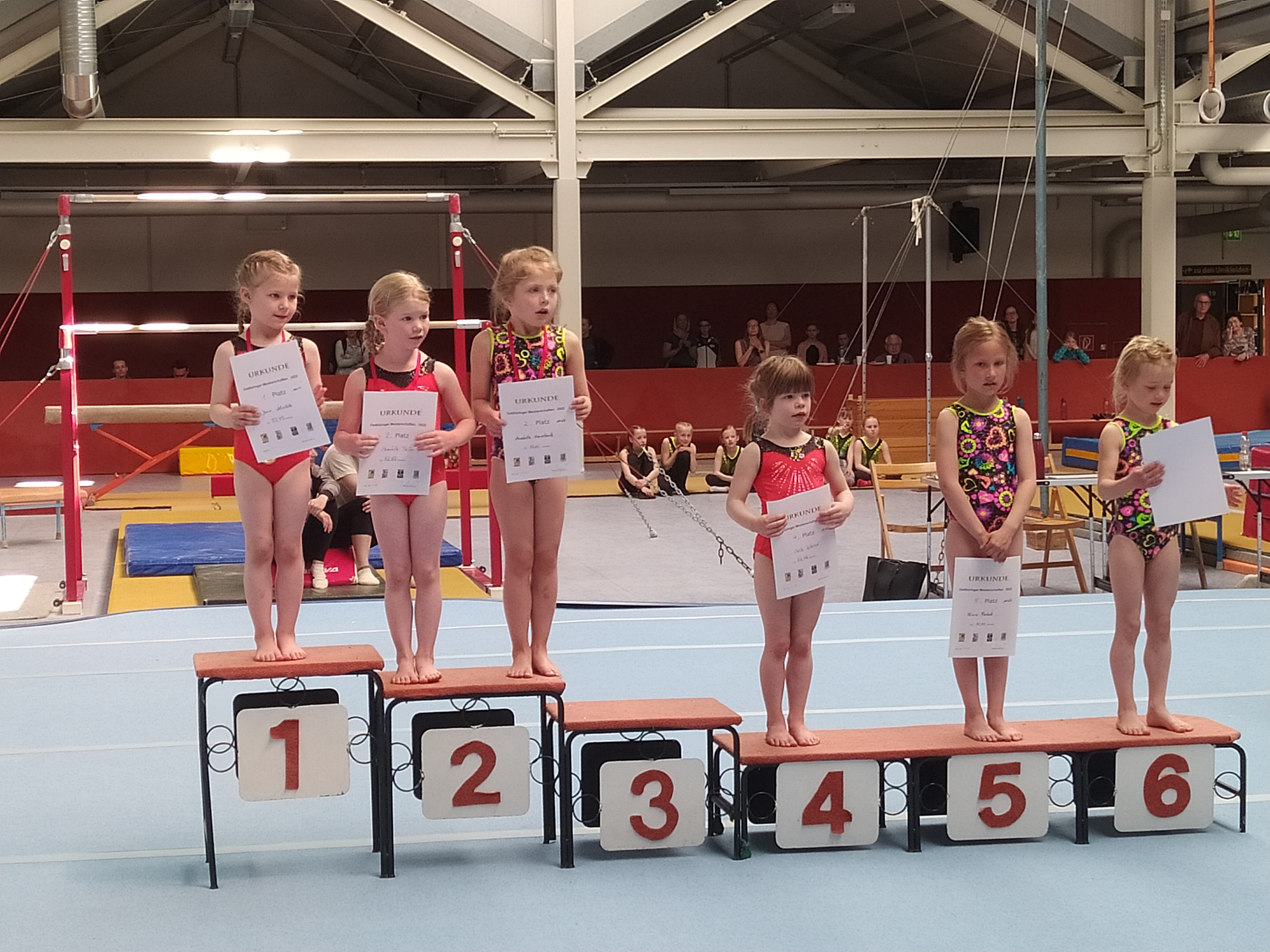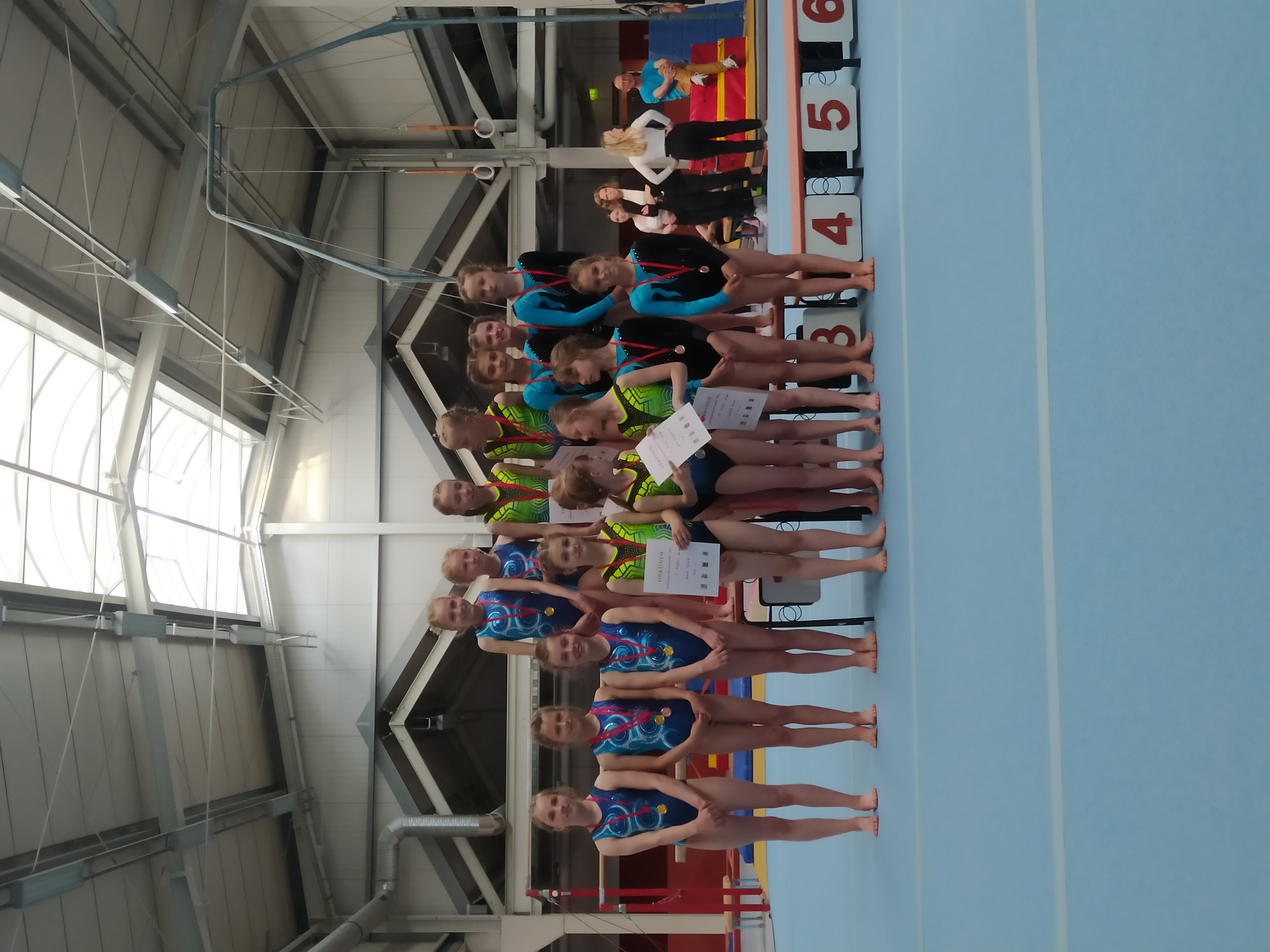 Die 1. Mannschaft, bestehend aus Roobey Reinhold, Ida Prokosch, Mara Köhler, Elisa Neumann und Livia Goletz errang nach einer großartigen Gesamtleistung den 1. Platz. Alle Turnerinnen wuchsen an diesem Tag über sich hinaus und zeigten beeindruckende Leistungen. Roobey erreichte, nach einer tollen Leistung an allen vier Geräten, den 3. Platz mit unglaublichen 58,5 Punkten. Den Tages-Höchstwert am Sprung mit einem perfekten Sprung turnte Ida. Sie erreichte in der Einzelwertung den 4. Platz.