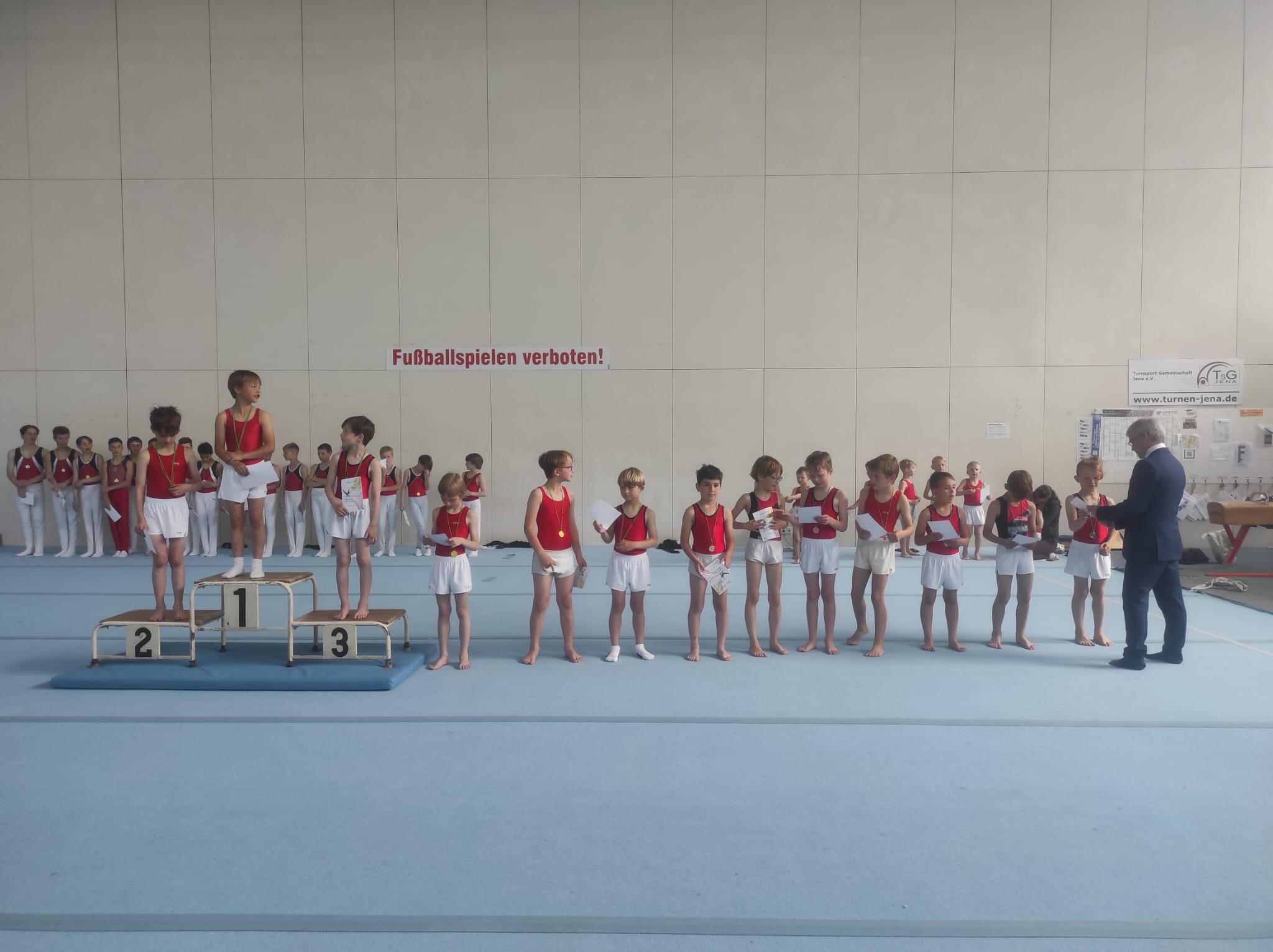 Am Ende freuten sich Otis Weber, Alfred Heisler und Valentin Siebert über die Gold-, Silber- und Bronzemedaille. Da man seit Jahrzehnten der letzte verbliebene Verein im Jungenturnen in Ostthüringen ist gingen die Teammedaillen ebenfalls nach Jena. Ein Team besteht aus 4 Turnern und so konnten sich am Ende alle 8 Teilnehmer über eine Medaille freuen.